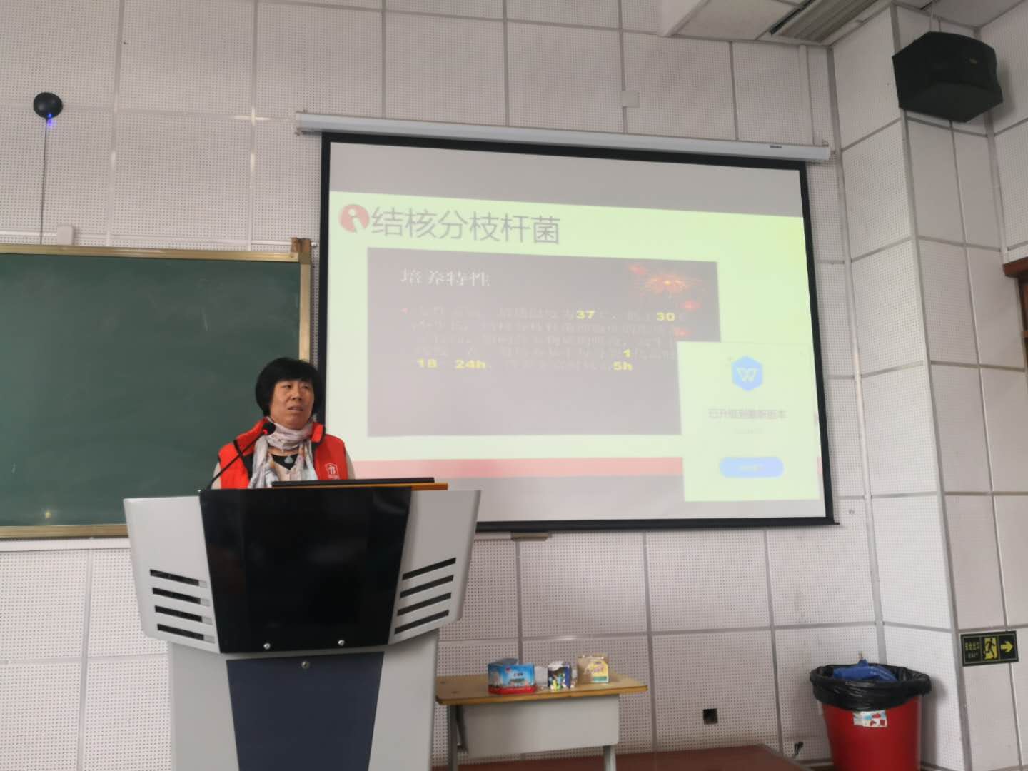 王老师从事结核病的防治工作多年,具有丰富的临床经验。她首先介绍了全球结核病的现状,大家了解到我国为结核病第二大国,仅次于印度,是世界上结核病疫情负担最重的国家之一。结核病的疫情呈现感染率高、肺结核患病率高、死亡人数多的特点。随后她又详细深入地讲解了肺结核病的概念、成因、危害、传播途径、患病人群及预防措施。她讲到对肺结核病来说防治是一个需要高度重视的公共卫生问题。最后针对同学们所处的年龄段容易产生的困惑,讲解了结核病一些常见的发病时期、发病症状及相关疫苗知识,同学们边听边记,非常认真。