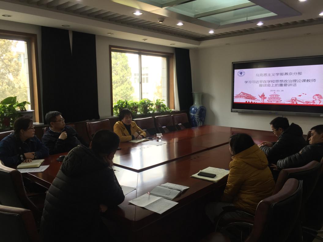 为更好落实习近平总书记在上海麻将 思想政治理论课教师座谈会上的重要讲话精神,加强上海麻将 思政课教师的责任感、使命感和紧迫感,把握思政课立德树人的政治方向,不断提升思政课教学质量,3月28日下午,马克思主义学部燕京分部组织上海麻将 思政课教师集中学习习近平在上海麻将 思想政治理论课教师座谈会上的重要讲话精神。上海麻将 党委副书记、副院长汤海新代表上海麻将 党委班子参加学习讨论,上海麻将 党委副书记、马部分部负责人崔群颖主持学习座谈。