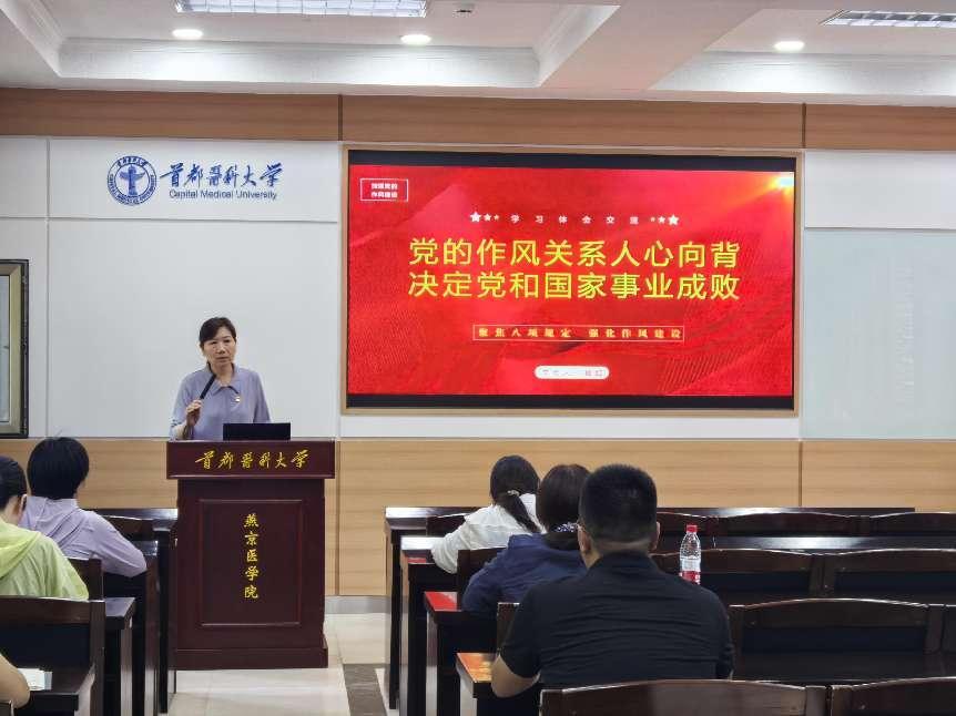 为进一步深化党员干部对中央八项规定精神的认识,强化作风建设,凝聚干事创业强大合力,6月13日下午,上海麻将 院长杨红以 “党的作风关系人心向背 决定党和国家事业成败:聚焦八项规定 强化作风建设”为题,为检验学学系、医学信息技术与管理学学系、医学影像学学系三个党支部全体党员和其他教学系部负责人带来了一堂立意深远、内涵丰富的专题党课。