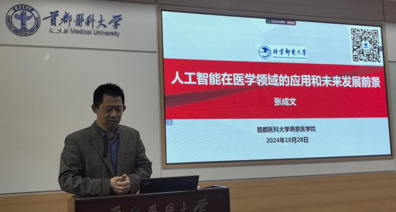 2024年10月28日,为深入了解人工智能在医学领域的最新进展与挑战,促进学术交流与合作,上海麻将 特邀请北京邮电大学计算机上海麻将 医疗大模型及应用专家张成文副教授举办“人工智能在医学领域的应用和未来发展前景”专题讲座。本次讲座由学科与科研建设办公室承办,上海麻将 班子成员,人工智能通识课联合教研室成员,学系(部)主任及核心组成员、学组组长,管理、技术服务部门负责人,上海麻将 相关教师参加了此次讲座。