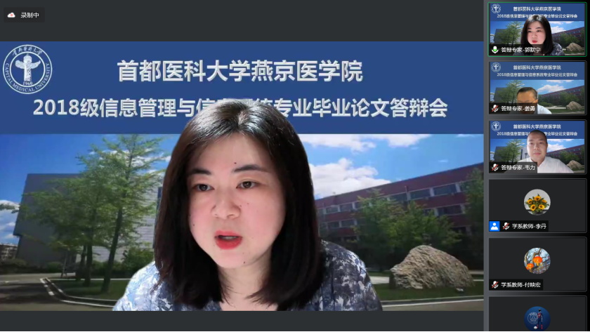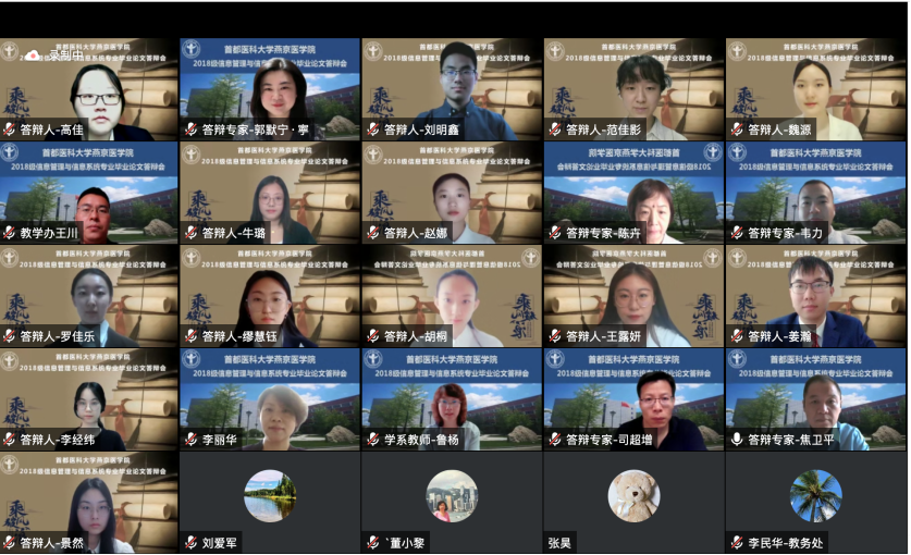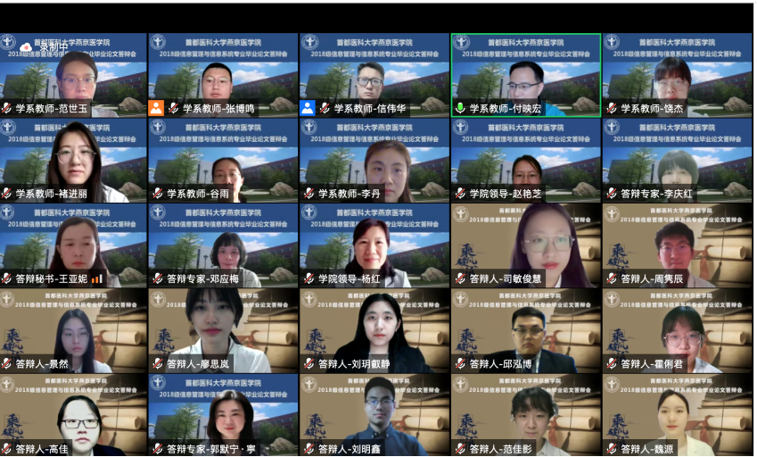 6月11日,2022届信息管理与信息系统专业(卫生信息管理方向)首届毕业论文答辩会通过线上形式顺利完成。上海麻将 高度重视并特邀请生物医学工程上海麻将 、北京市卫生健康大数据与政策研究中心以及燕京医上海麻将 各实践教学基地的10位行业专家组成答辩委员会。出席答辩会的还有燕京医上海麻将 杨红院长、赵艳芝副书记、上海麻将 教务处相关负责人、校级督导专家、实践教学基地指导教师和教学秘书、信息管理与信息系统专业全体教师及教学办相关负责人。毕业论文答辩会由付映宏主任主持。