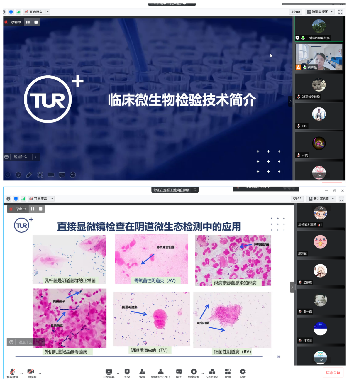 王爱萍老师首先简要介绍了临床微生物检验技术、微生物与人类之间的相互关系,以及微生物感染性疾病的现状。之后,王老师讲解了临床病原体检查的目的、病原体检查的方法与阴道微生态形态学检测指标的意义,并用临床检验的涂片教大家如何鉴别淋病与各种细菌感染导致的阴道炎等妇科疾病。通过对当前临床诊断的现状的介绍,王老师让大家了解到病原基因组学在疾病诊断方面的优势,分子诊断比传统感染病原检验更精准、更客观、更全面。