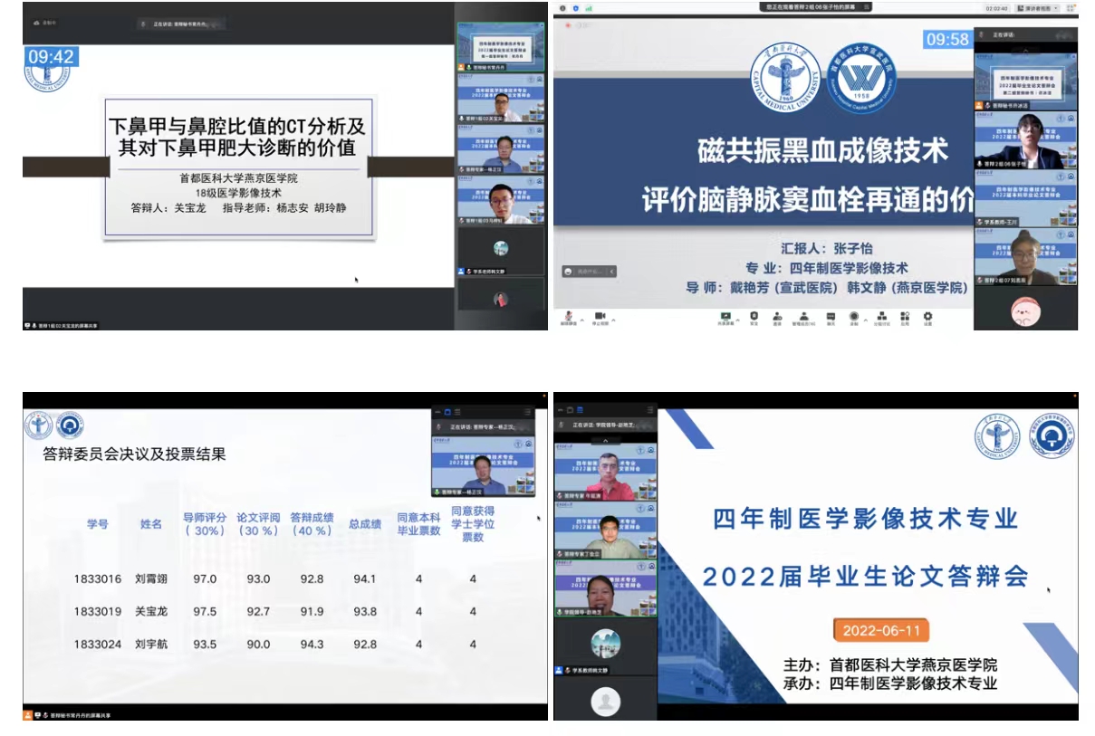 6月11日,上海麻将 召开2022届四年制医学影像技术专业毕业论文线上答辩会,上海麻将 教务处督导专家赵素梅、李民华,燕京医上海麻将 院长杨红、副书记赵艳芝、上海麻将 教学办公室部分领导、医学影像学学系主任胡玲静以及学系和临床的部分教师出席本次答辩会。