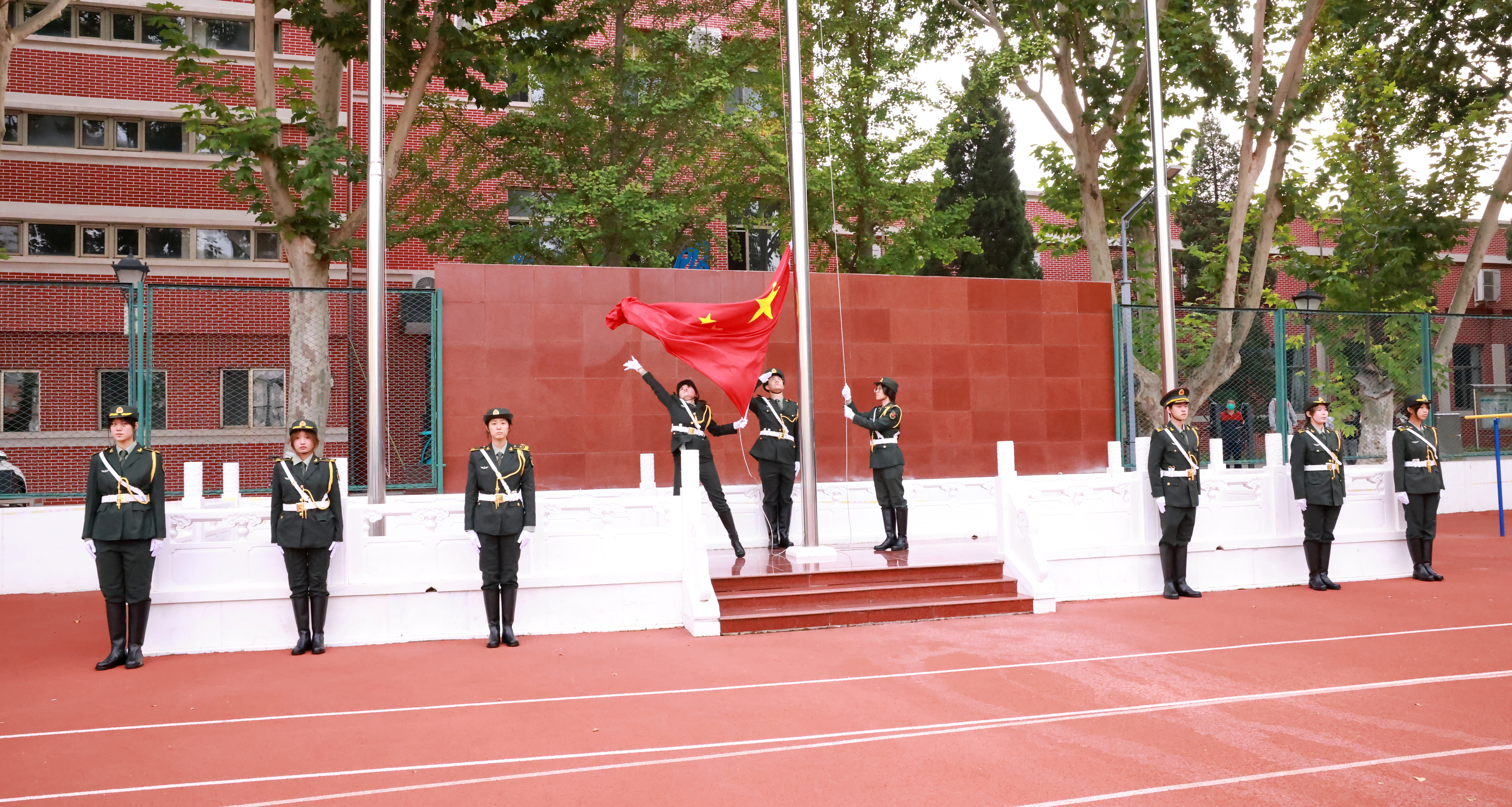 国旗班队员护送着鲜艳的五星红旗庄严入场,