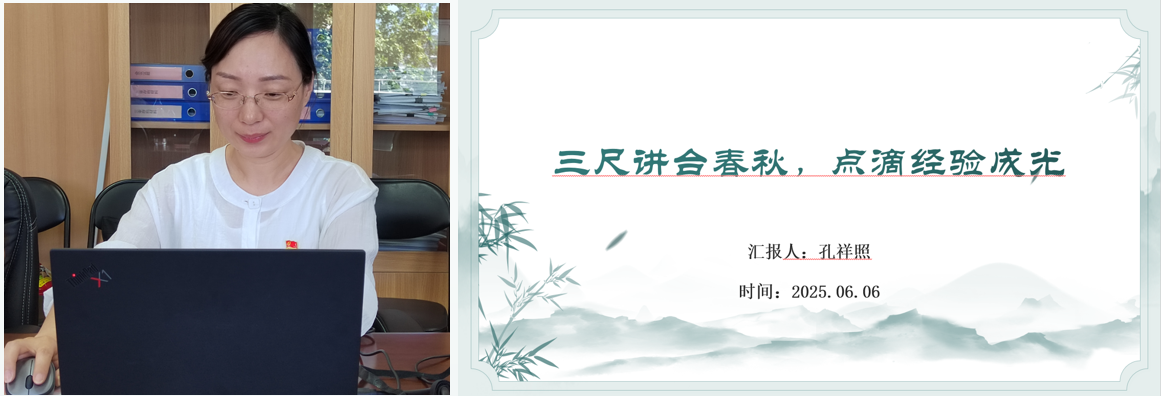 分享环节,孔祥照老师以“三尺讲台春秋,点滴经验成光”为题,分享荣获北京市高校第十三届青年教师教学基本功比赛(医科类)的经验,强调教学过程不仅是知识传授,更是对学生综合素养的培养,提出“高效施教提兴趣,聚焦素养育全才”的理念,并通过具体案例展示了如何将德育渗透到教学中。