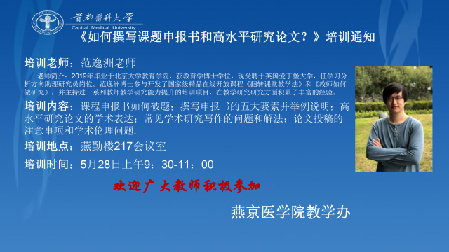 《如何撰写课题申报书和高水平研究论文》培训通知