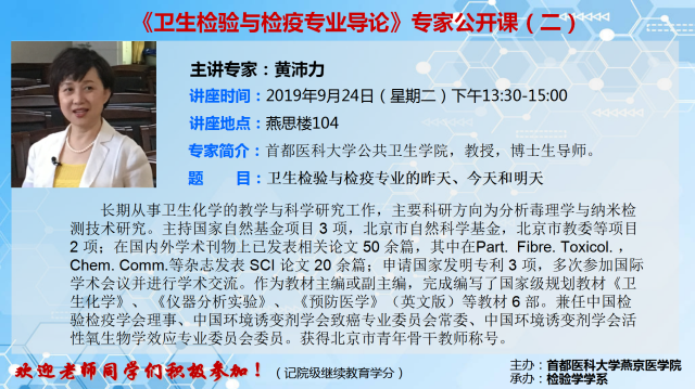 黄沛力教授《卫生检验与检疫专业导论》专家公开课(二)的通知