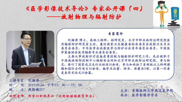 刘澜涛研究员《医学影像技术导论》专家公开课(四)的通知