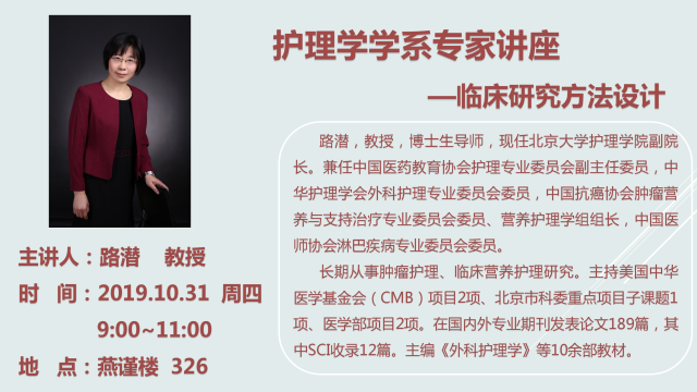 路潜教授护理学临床研究方法设计讲座的通知