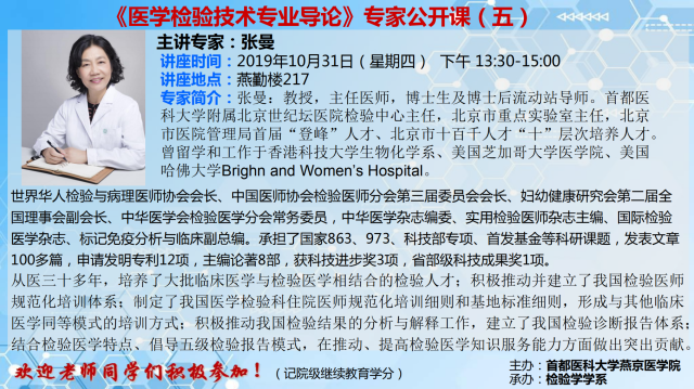 张曼教授《医学检验技术专业导论》专家公开课的通知
