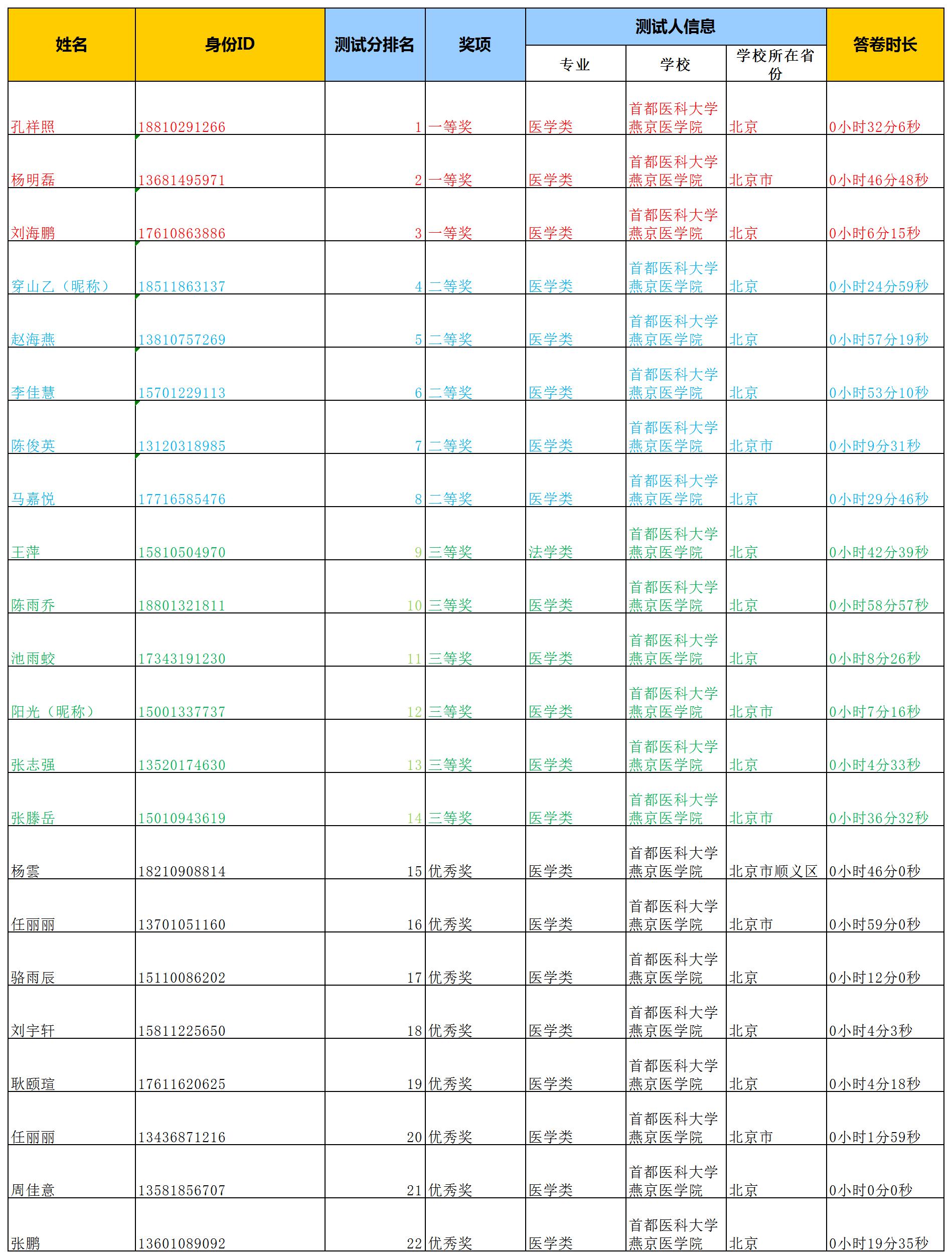 2020年燕京医上海麻将 第一届万方数据检索大赛获奖名单