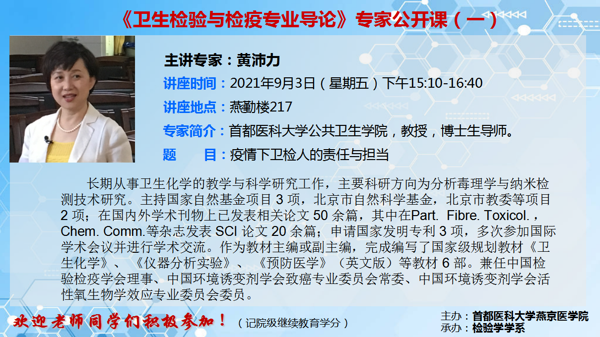 关于《卫生检验与检疫专业导论》专家公开课的通知