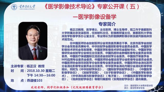杨正汉教授医学影像设备学讲座通知