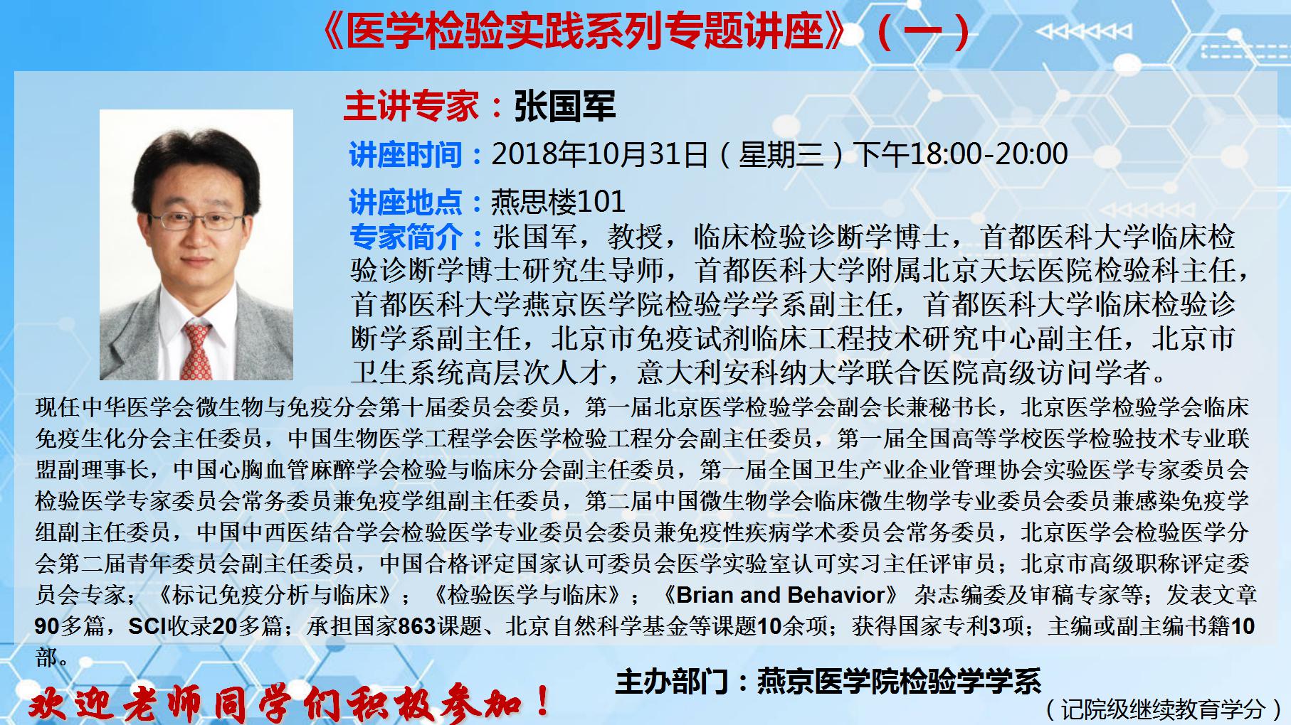 张国军教授《医学检验实践系列专题讲座》的通知